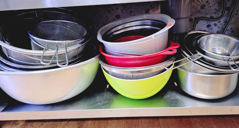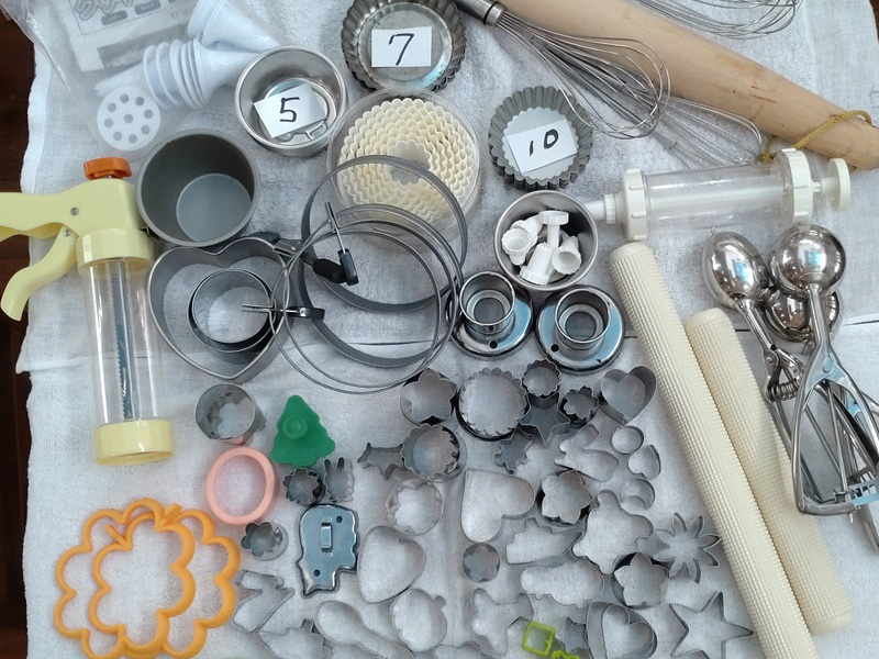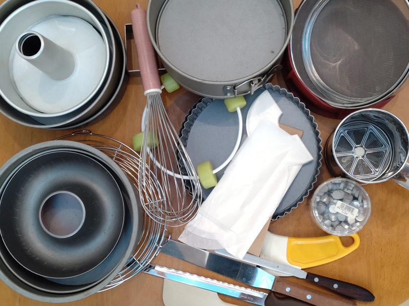 ケーキ、クッキー、パン等小物一式(ボウル、ざる、鍋、やかん他)